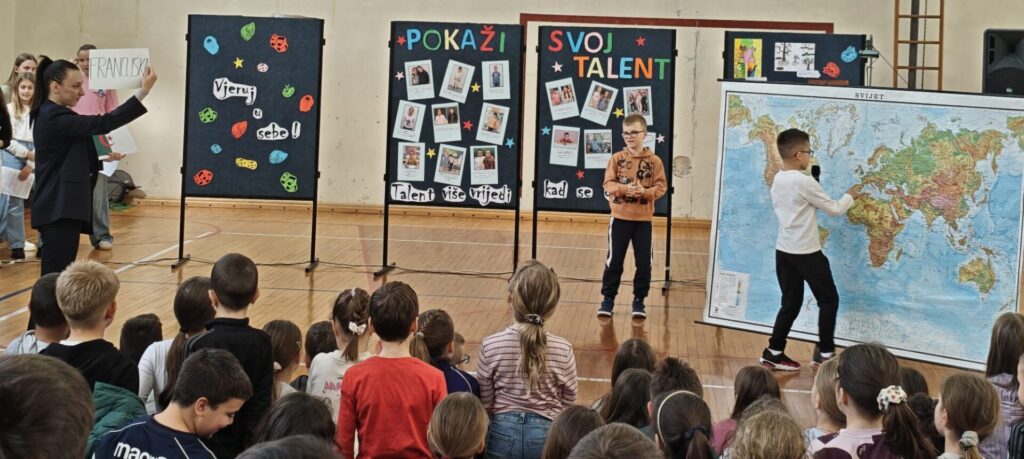 Naša škola se 26. i 27. ožujka 2026. pretvorila su pravu pozornicu talenata. Smotra „Pokaži svoj talent“ okupila je učenike od prvog do osmog razreda koji su s puno entuzijazma, truda i hrabrosti predstavili ono što vole i u čemu su najbolji.